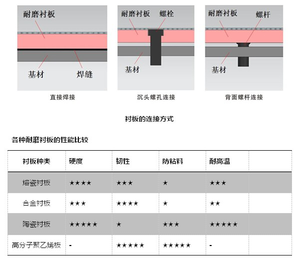 熔瓷襯板所有產(chǎn)品均可焊接,現(xiàn)場(chǎng)切割比較困難,不建議切割!安裝方式可采用: ①直接焊接②沉孔預(yù)制